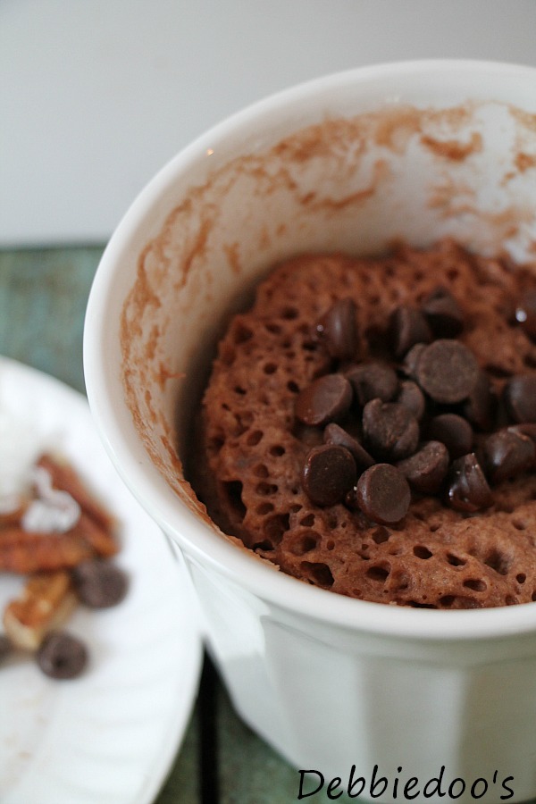 4. When you remove from microwave you can add toppings such as chocolate chips, coconut, nuts, whatever you desire. This was delicious and felt pretty guilt free yet satisfied the sweet tooth. Enjoy!
