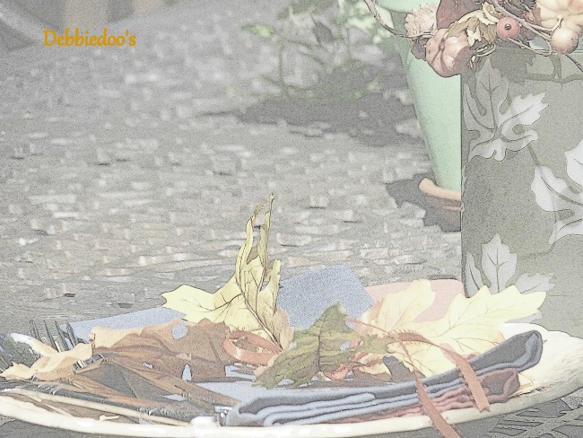 Thanks for hosting, Debbie! I did a real easy one this time {I’ve been so busy with painting and sewing I needed “easy”}. I see you did an easy one, too! Such a great idea for a place setting for a Fall table. I love the casual look yet it makes it feel special.