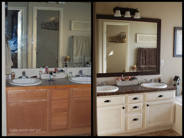 That is a gorgeous transformation! I love the newly painted vanity, it looks like a completely different piece now. The pulls are so perfect on it too. In fact everything in it is perfect!