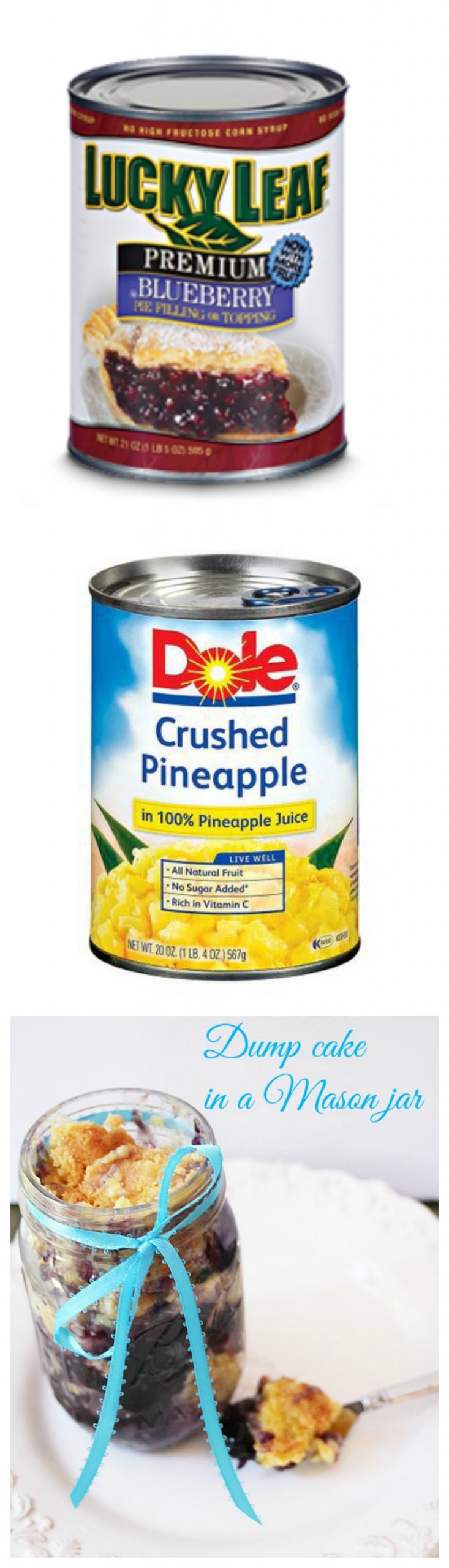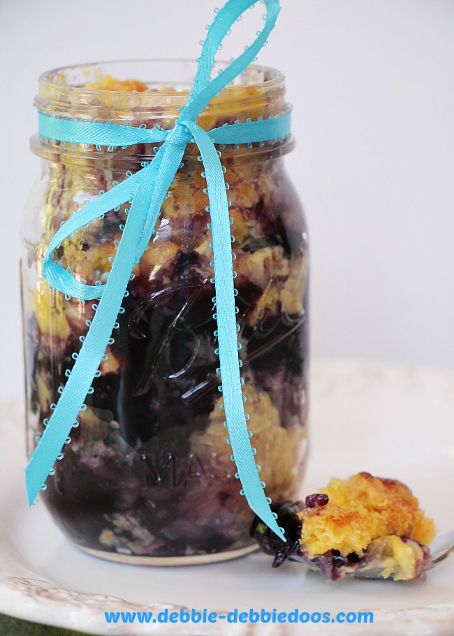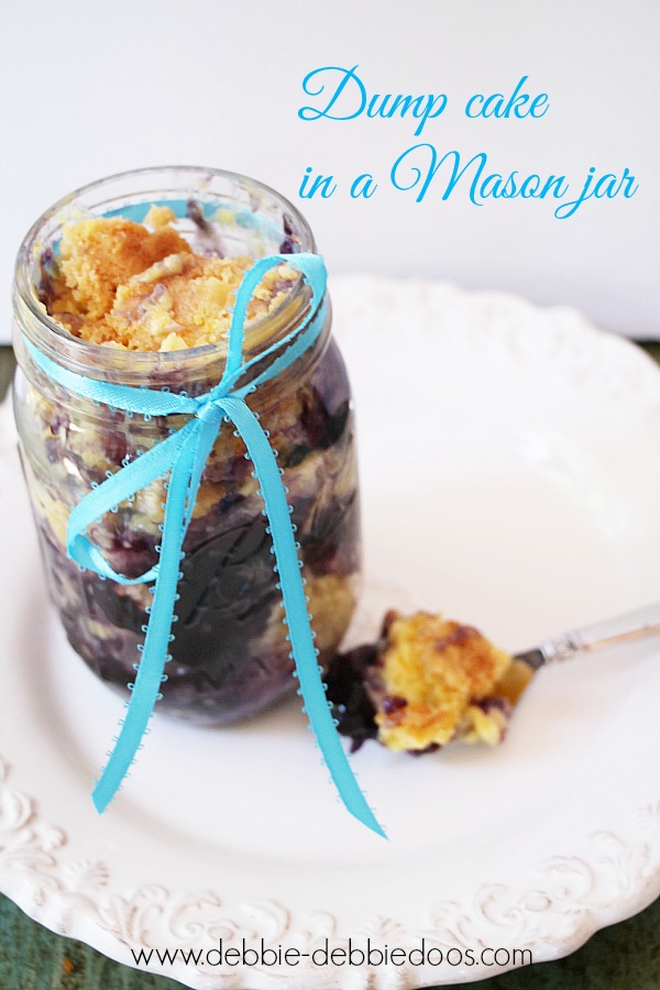 Today, I am sharing a blueberry/pineapple dump cake in mason jar recipe.