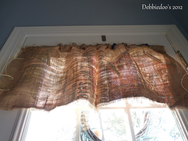 These burlap rice bags have gone a super long way in my house. {free} I have just a few pieces left, and I decided I would make a burlap valance for the laundry room.