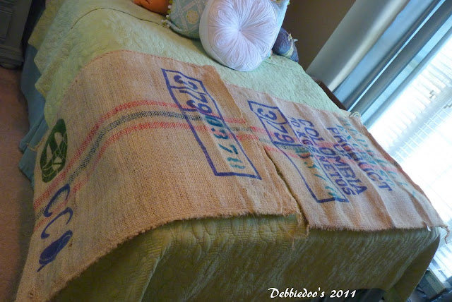 What you have are REAL sacks. The ones they use for REAL working purposes. I love the graphics on them. Can you use it as a wall hanging on a patio (if it is too big to use inside)? Or…if you have visitors coming that you don't want to stay too long you could always use it as a top sheet…just a thought- xo Diana