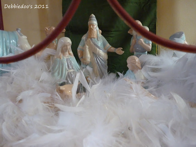 Like my white feather boas? I think they add a very pretty softness to the nativity scene…