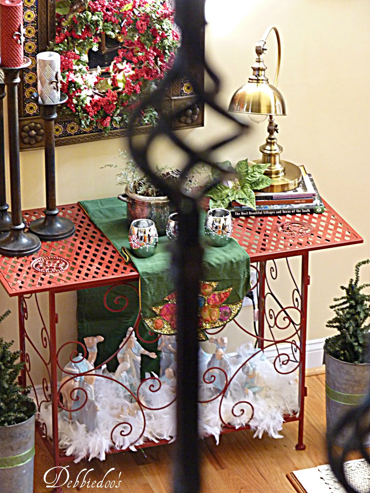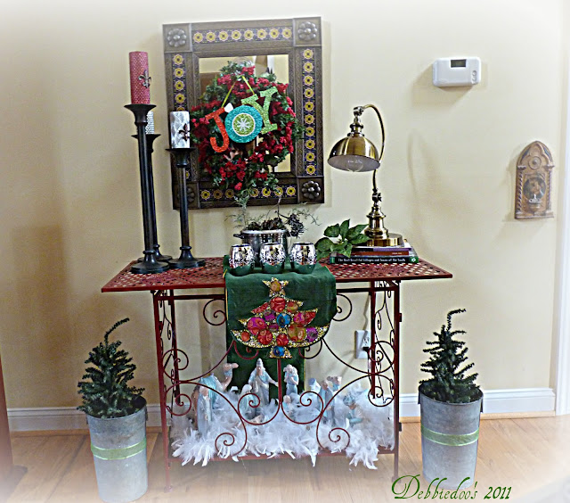 You see my pretty nativity scene? This was gifted to me last year by my Mother-in-law in from Buffalo. She hand made this back in the day when she took ceramic classes.