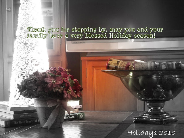 Your Christmas decorations look great. I'm curious about that next post ~ so I'll be back!