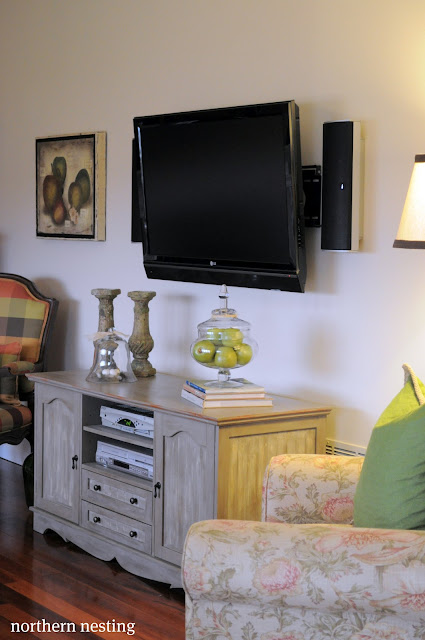 I love to mix different pieces in a room. All the pieces that you see painted throughout the house have been painted by me. I walk around with a paint brush in my hand looking for the next victim(LOL)!