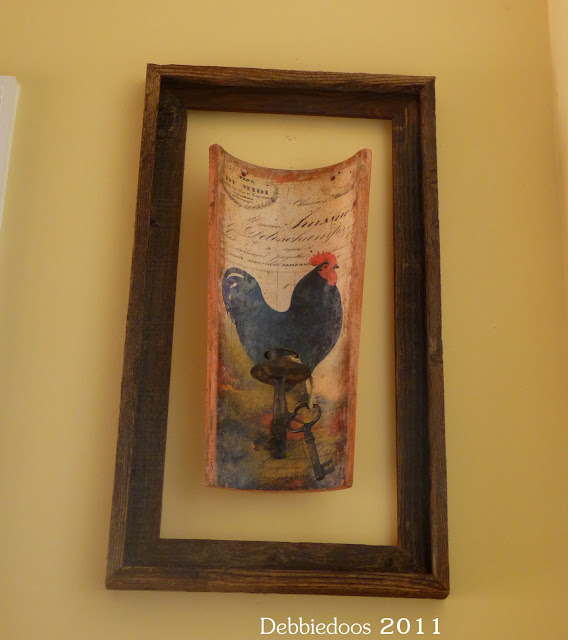 wow we you did good Deb love the plater on the wall looks great and the rooster sconce is awsome and the knife holder and the rooster salt and pepper and the liveing moss ball is just to cute everything looks wonderful i know they will love your home:)