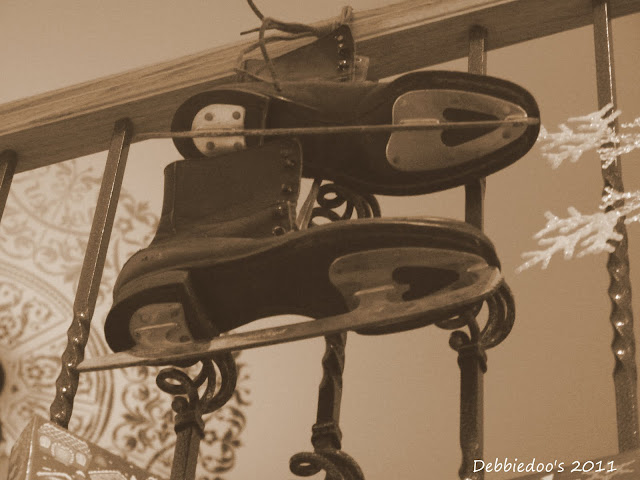 I do however, have a pair of old black skates, some greenery,some gift boxes, and of course some dollar tree junk.