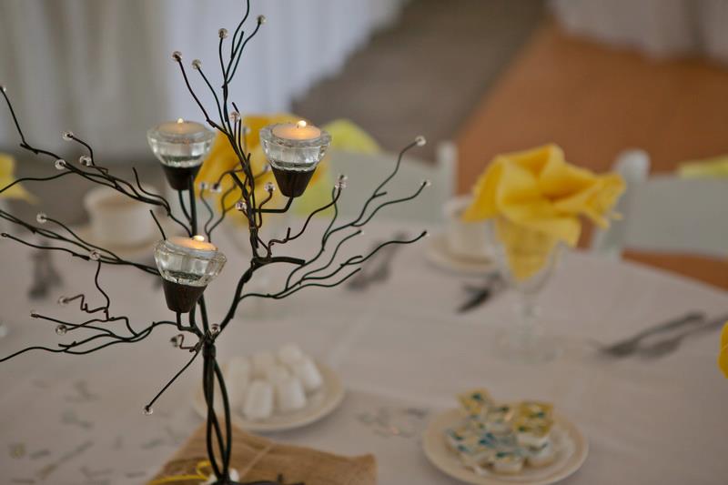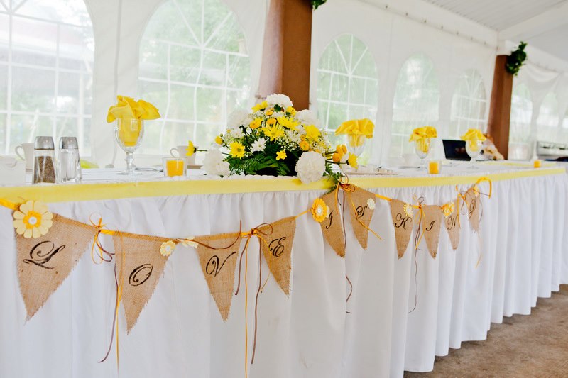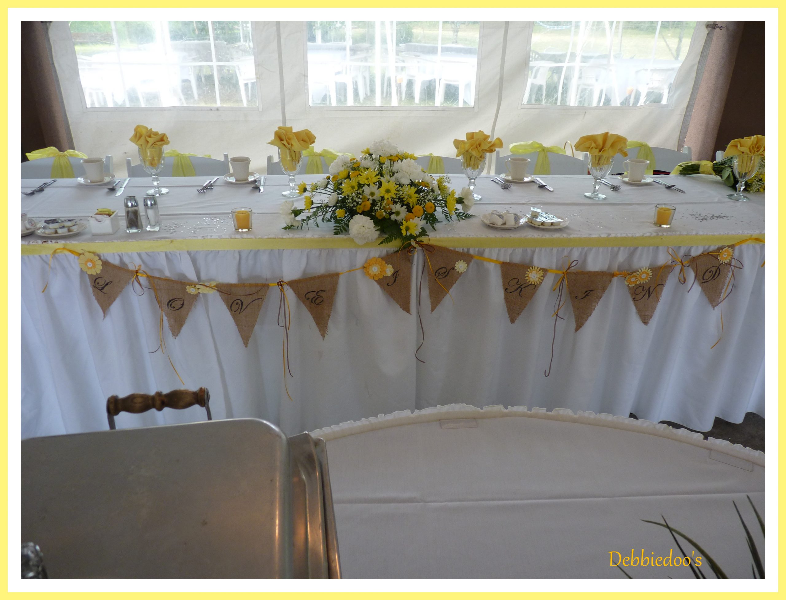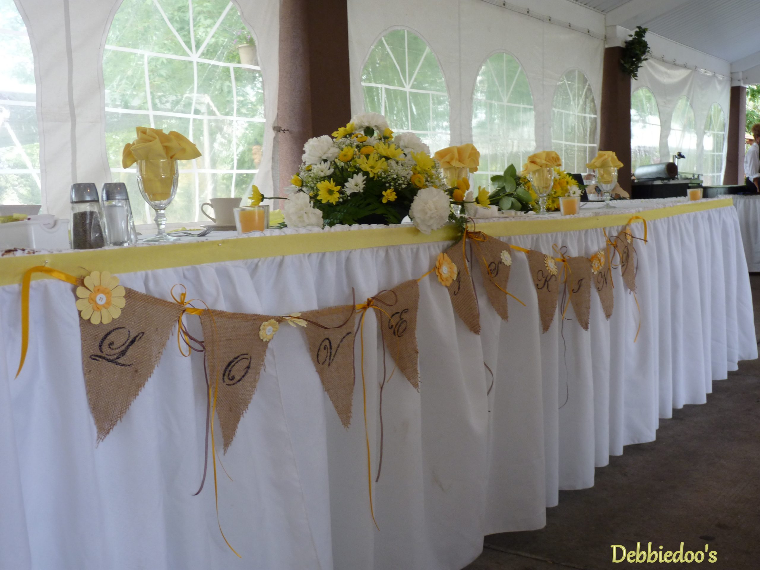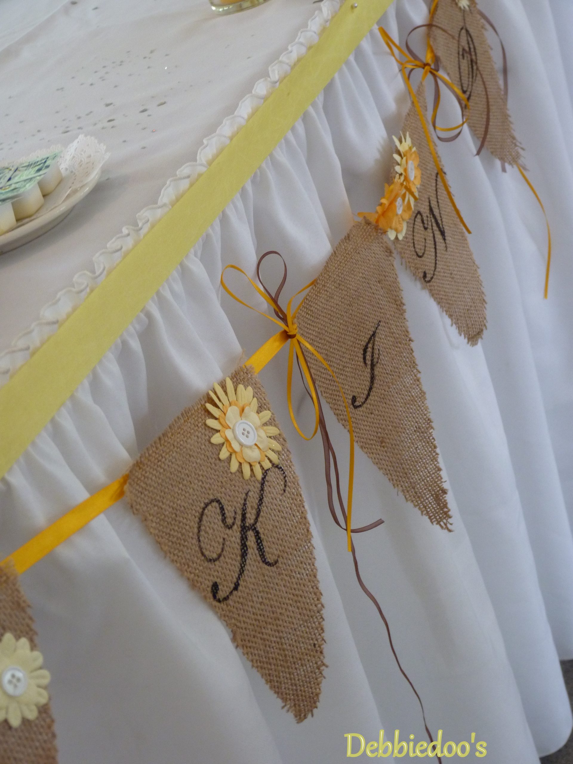 What a beautiful banner! The burlap looks so pretty with all the yellow decor on the table. So fun that she can reuse in her own home! Very, very pretty!