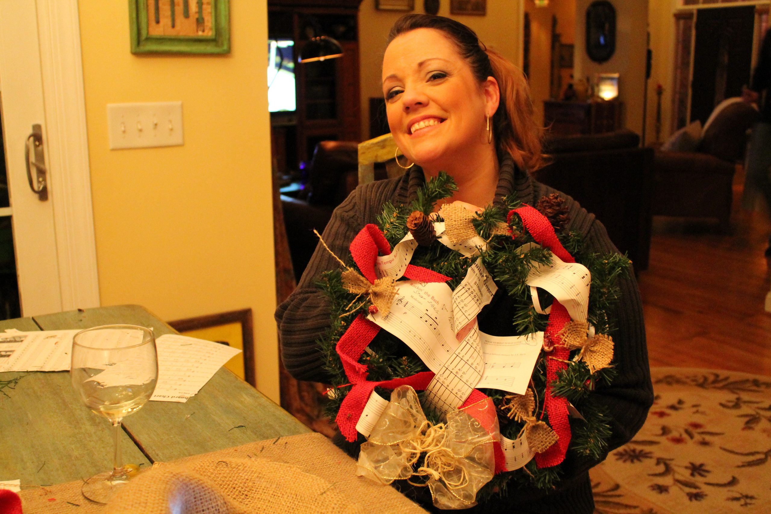 What fun, looks like you had a blast. All the wreaths turned out great. I love the addition of the sheet music.