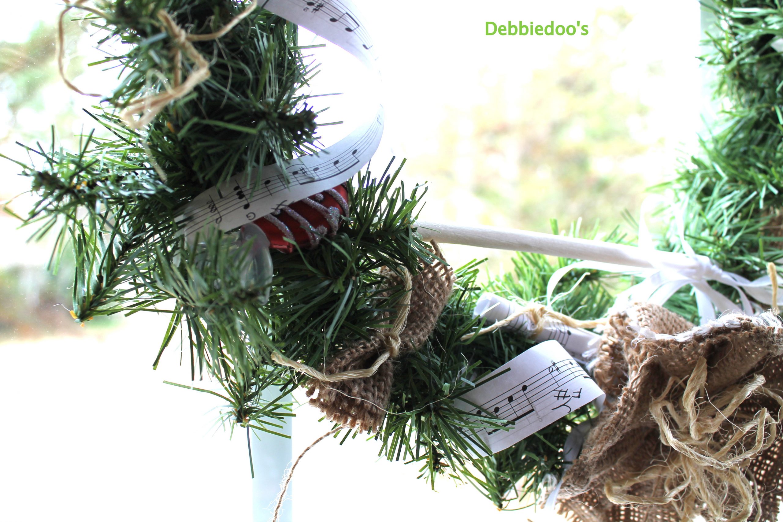 Love your wreath, Debbie! I like that it is a bit thinner, especially for hanging in a window. Love the sheet music strips.