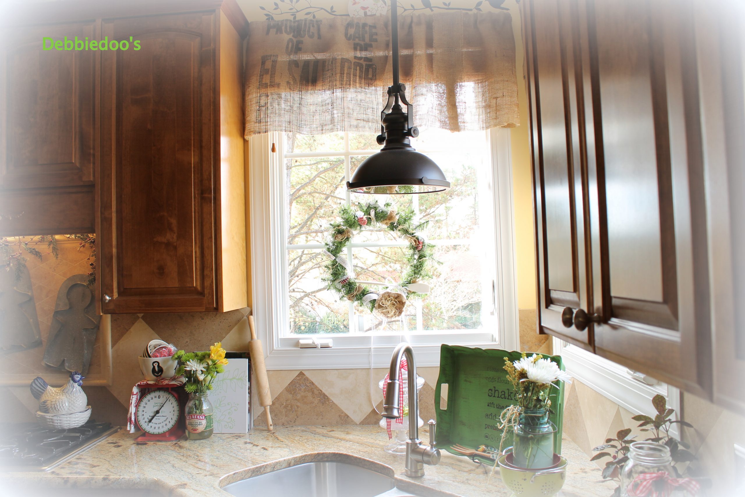 Debbie, the wreath looks so pretty in your kitchen window. Simply beautiful!..Hop you had a great weekend..Judy