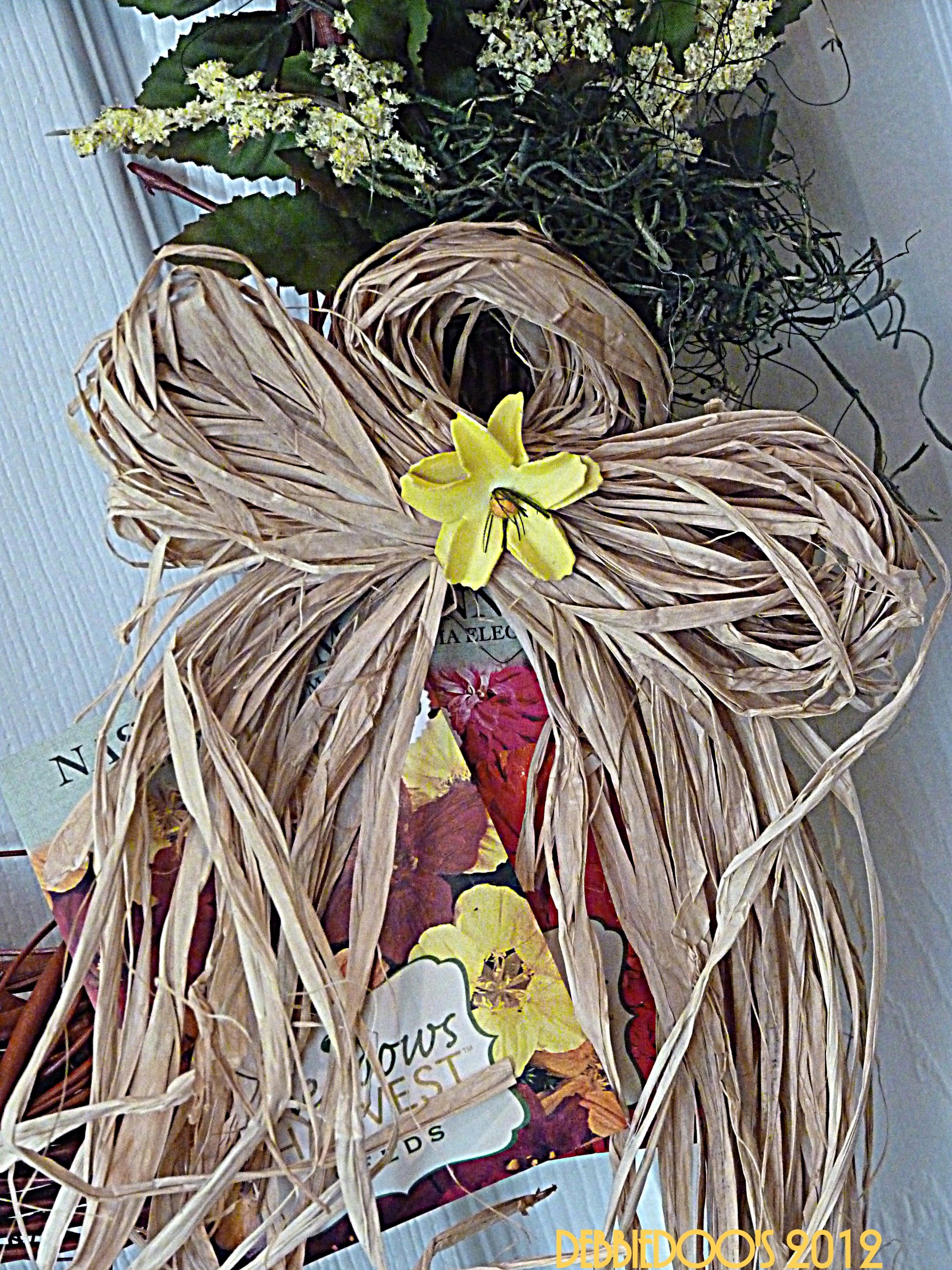 I spray painted the wreath and just added the raffia bow….