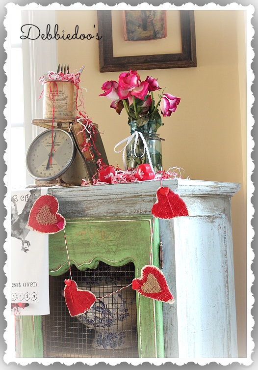 Awww, that is an adorable little banner Debbie! I love your little vignette:) I can never seem to motivate myself to decorate for Valentine’s Day but I always think about doing it. Enjoy the weekend with your hubby:)