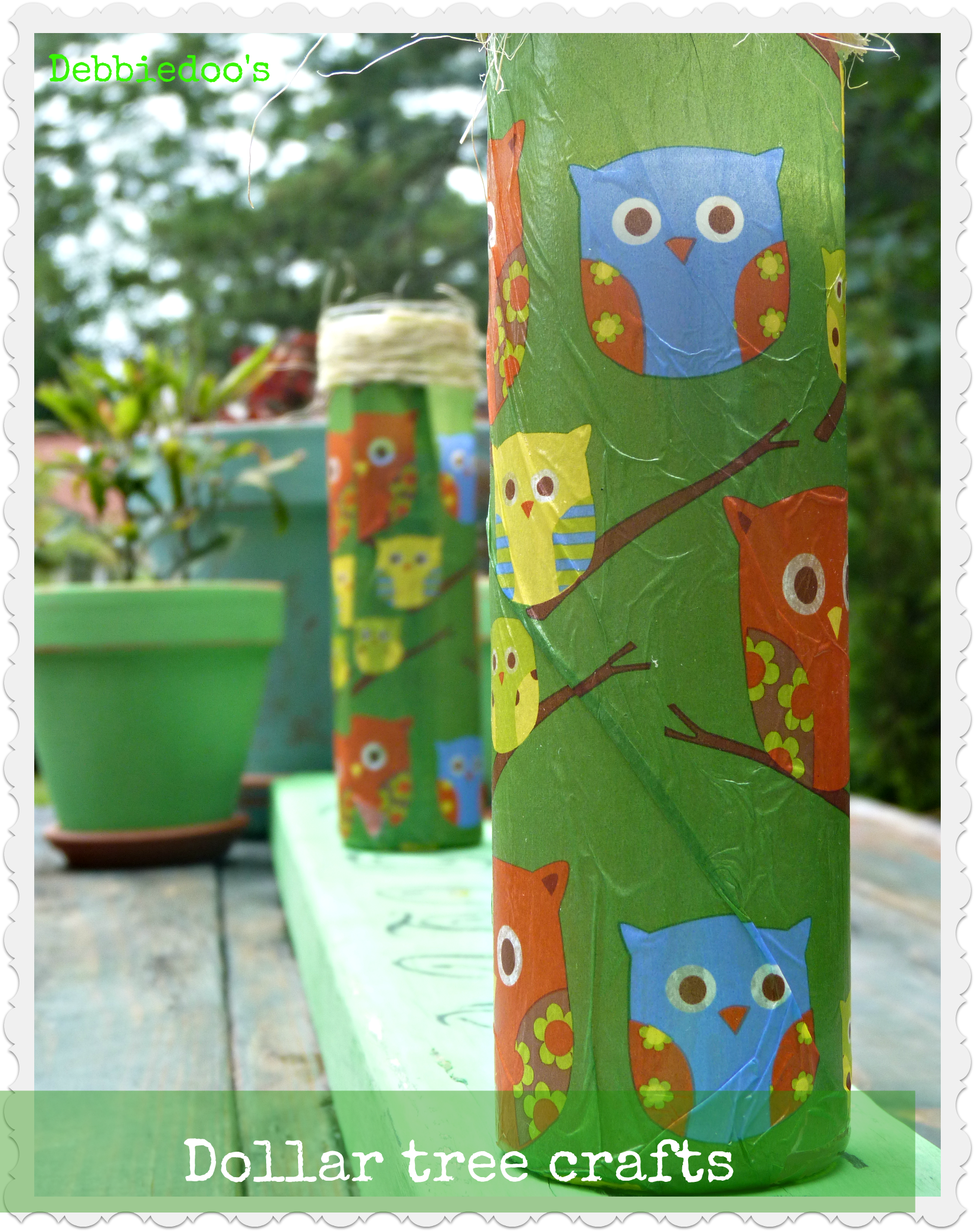 Oh how I love the Dollar Tree, and any $1 section really, and owls…so this is adorable and oh so crafty! Well done, Debbie! π