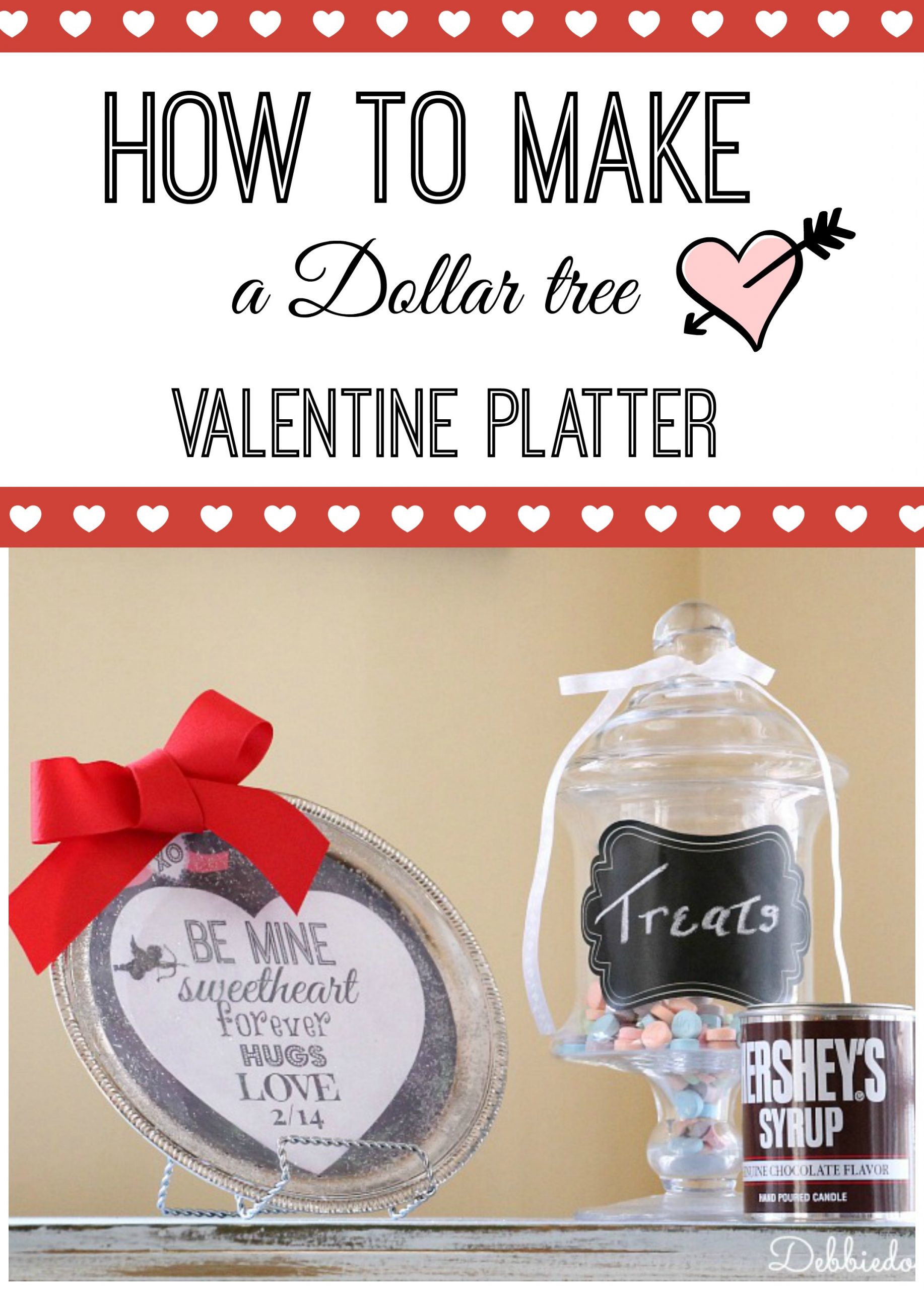 Debbie, this is super cute. I was going to head over to the Dollar tree to see what they had for Valentines Day. You found the silver tray there? Thanks so much for the printable. I think I’m going to try this!!