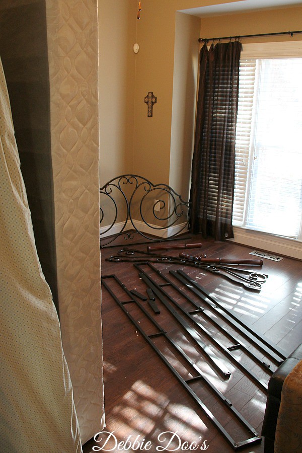First, I went on line and googled iron headboards. I found a ton of course, but not in our price range. A few years back we replaced our bedroom set with an iron bed and it truly was an investment and one that will last a life time. I have no intentions of replacing it ever.