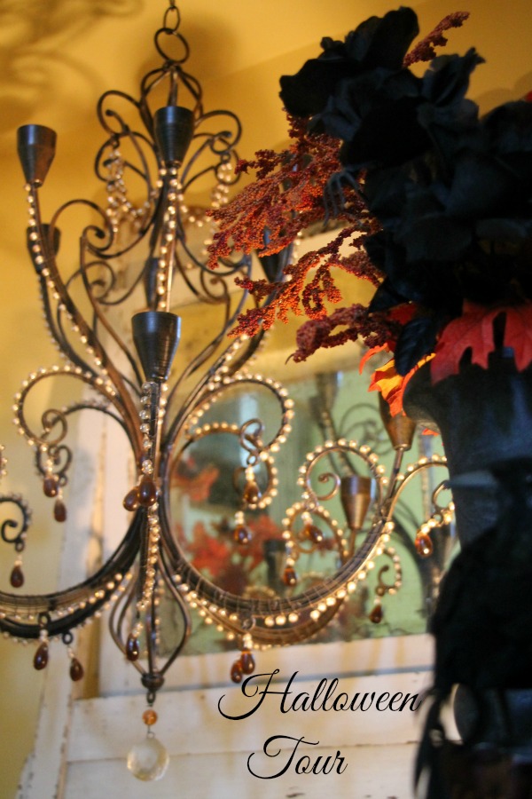 and just added the Happy Halloween sign and a crow. I figure after Halloween I will put my Fall mantel decor back up until after Thanksgiving.