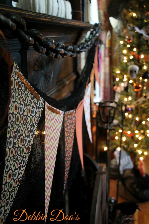 Love that fall bunting as well as the scary tree. Great Halloween decor.