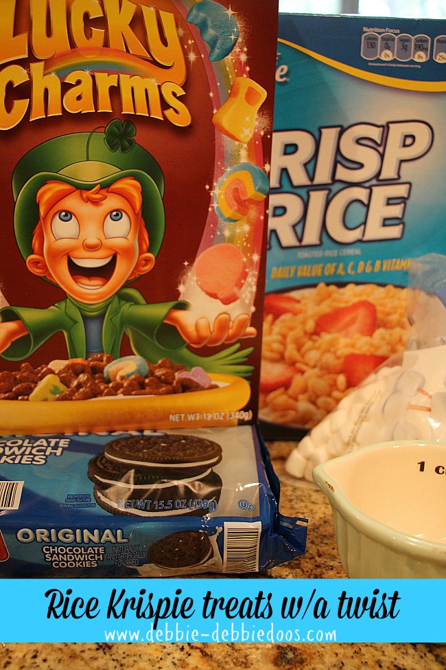 I was shopping at Aldi’s so you do see some generic rice krispies here and oreo’s too!