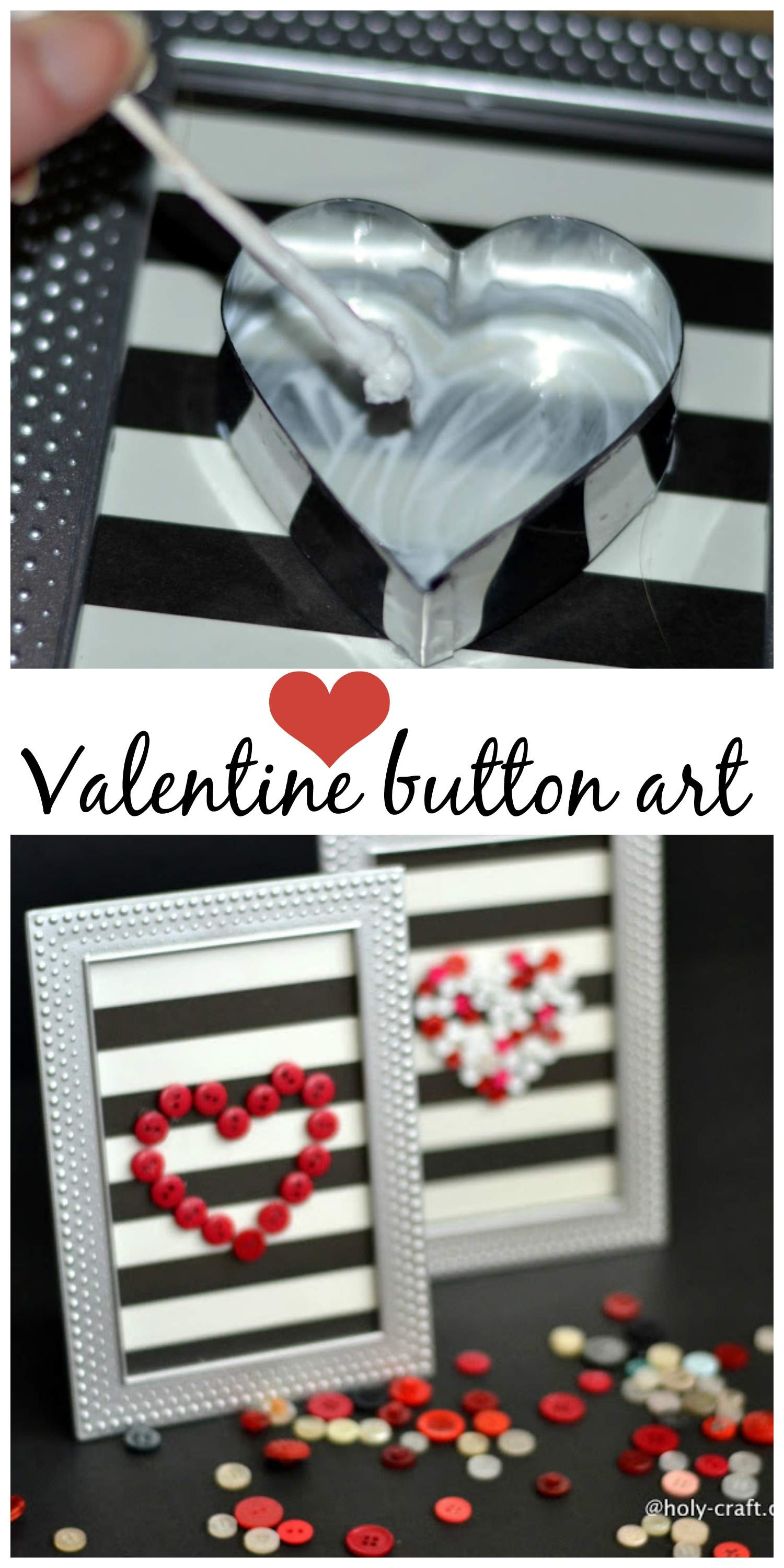 Hi there friends! Today, I have another creative, thrifty crafty gal over. She is sharing how to make Valentine’s day button framed art work. Her name is Rachel and she is creator over at Holy craft. Holy Craft is a home and family blog written by a stay at home mom of three. It’s Rachel’s hope that she can help you to live well on less, share tips and tricks to make you more efficient around the house and bring you inspiration for your every day life all without breaking the bank!