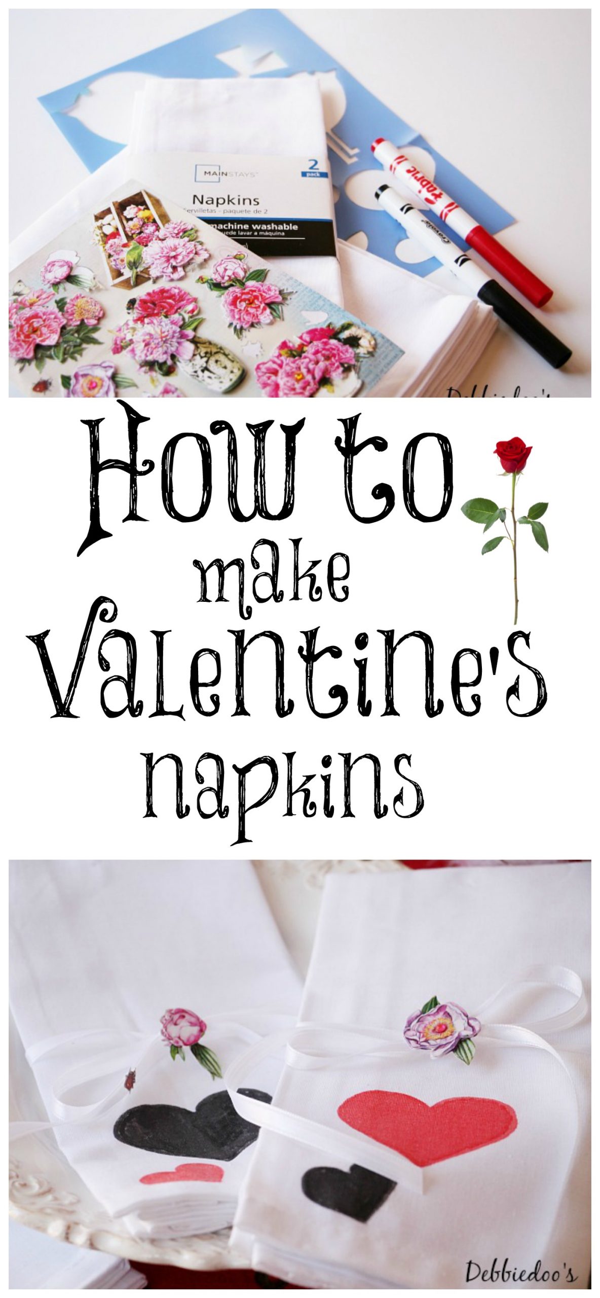 Tied with a simple white ribbon, and embellished with some roses make for the perfect Valentine’s diy napkins.