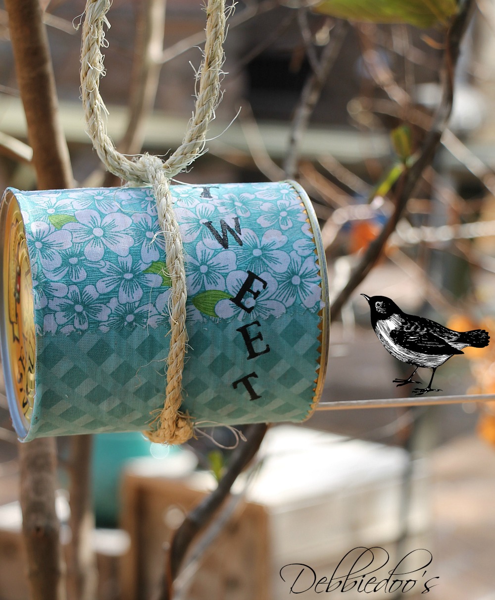 Very Cute Debbie. I love that you recycled the can into something new. Great idea and the birdies will love this.