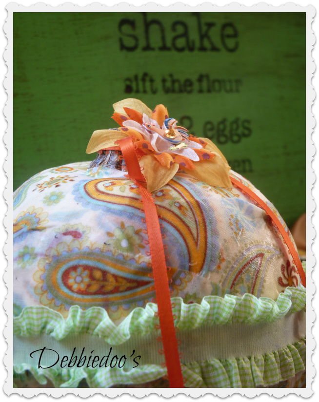 It’s a “country pumpkin”! So cute. I looooove the paisley fabric. Super cute.