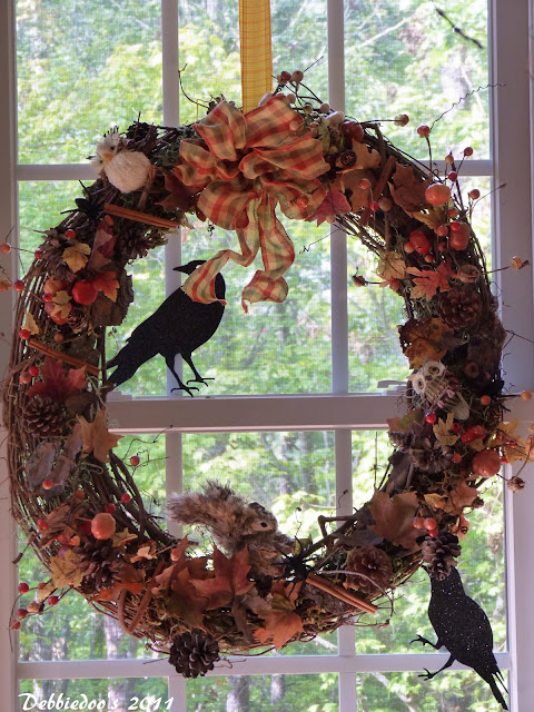 Everything hunted and gathered was simply hot glued on the grapevine. I used pretty Fall sprigs, and other small Fall embellishments I had around the house.