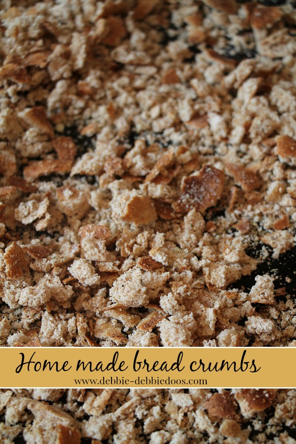 - Take your slices of whole wheat bread and place with tongs on rack of oven directly set at 250 degrees. Leave in oven until hard and golden brown, about 30 minutes; darker if you prefer. Remove and cool on wire rack. Crumble slices into a large bowl until reduced to fine crumbs, or place in bowl of food processor and process until fine. Add your seasonings, garlic powder, Italian seasoning, salt and pepper.