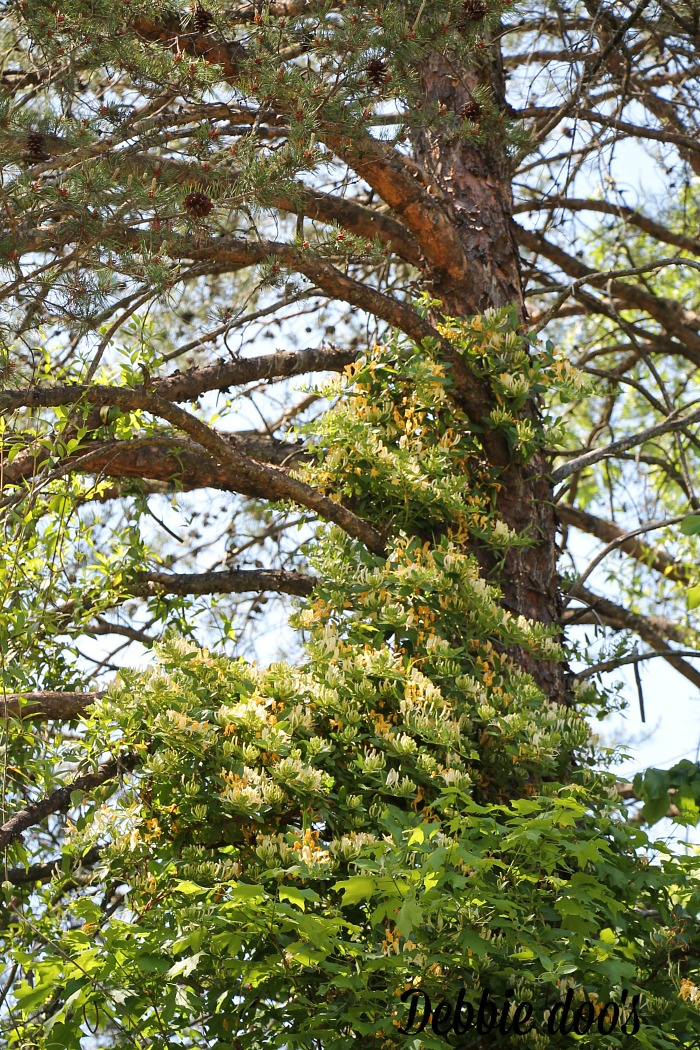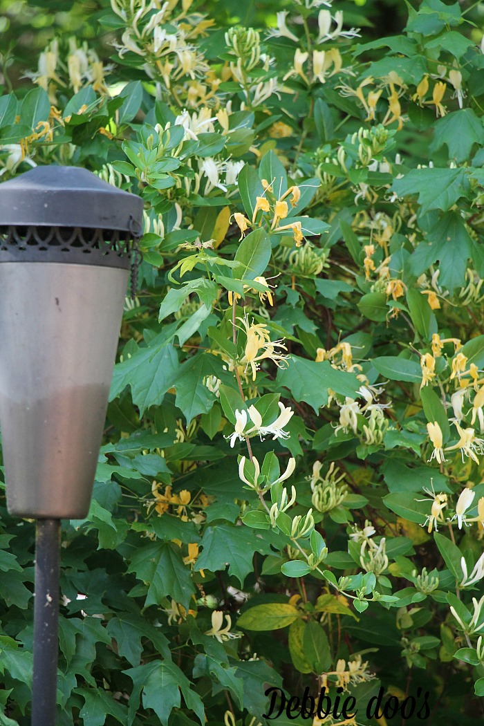 Heading toward the backyard we have honey suckle growing wild and smelling beautiful!