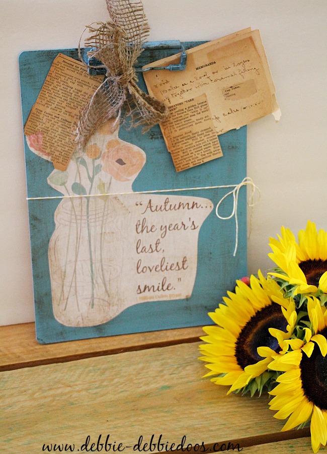 You made a lowly clipboard into something lovely. Fall is my favorite time of year, and that quote is perfect.