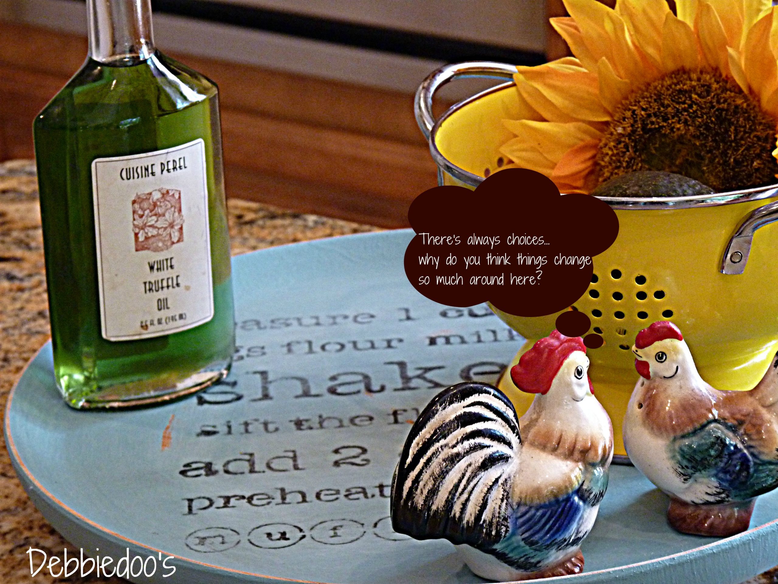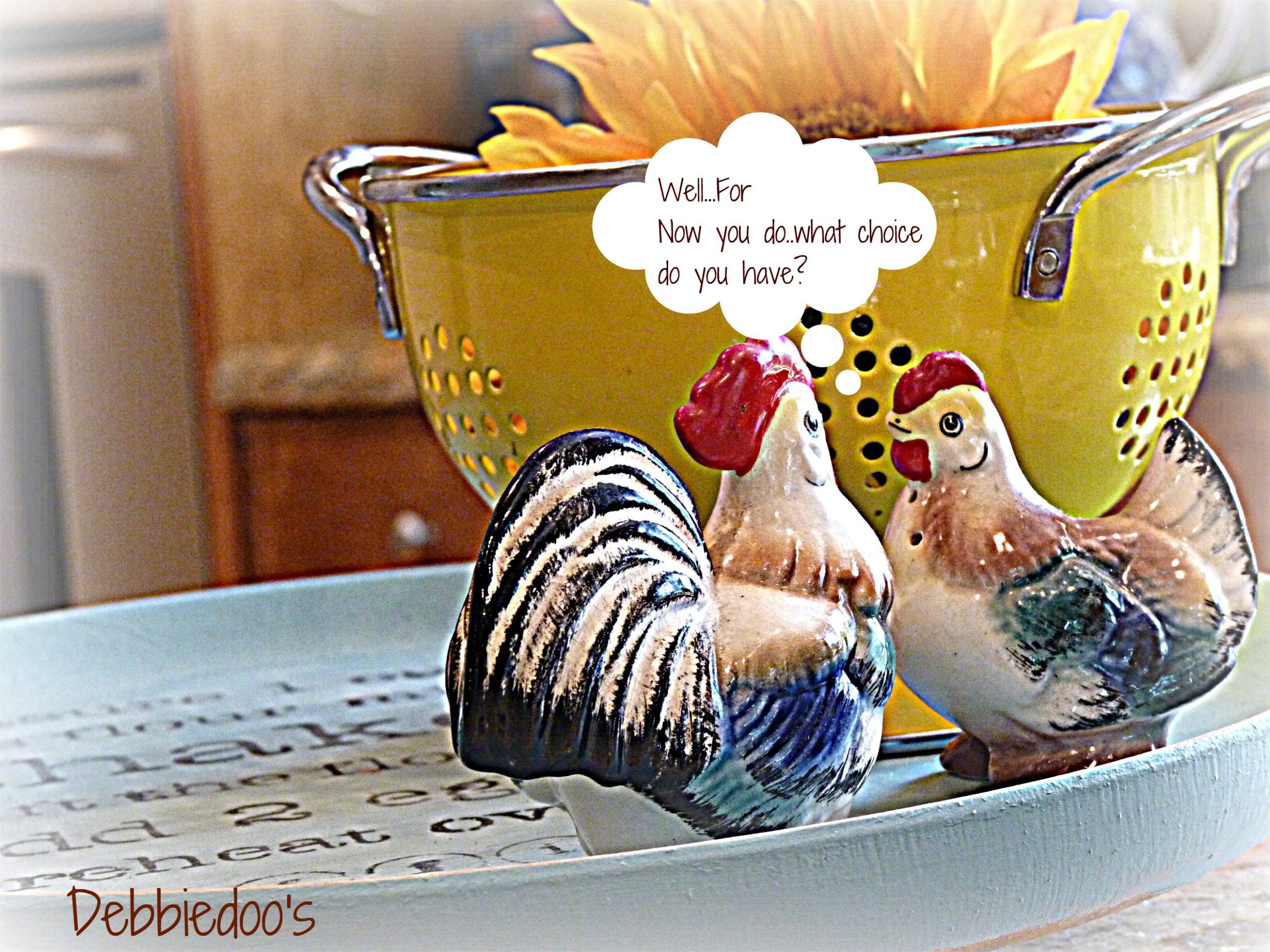 Debbie, reading your blog always puts a smile on my face. πŸ™‚ The lazy Susan looks really good in her new “look” and I just love the talking chickens. Are they available as guest bloggers? lol Hope you have a wonderful night!