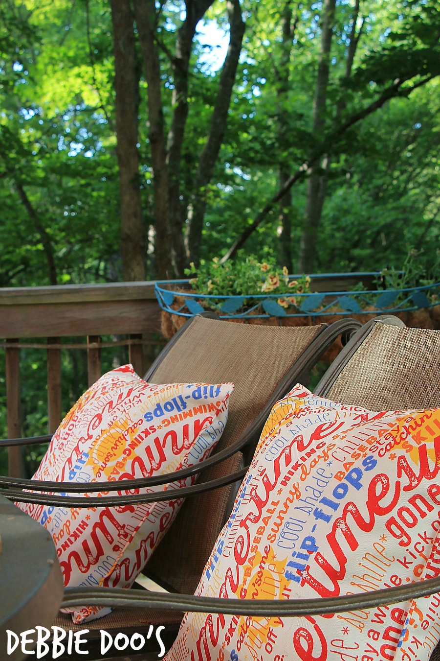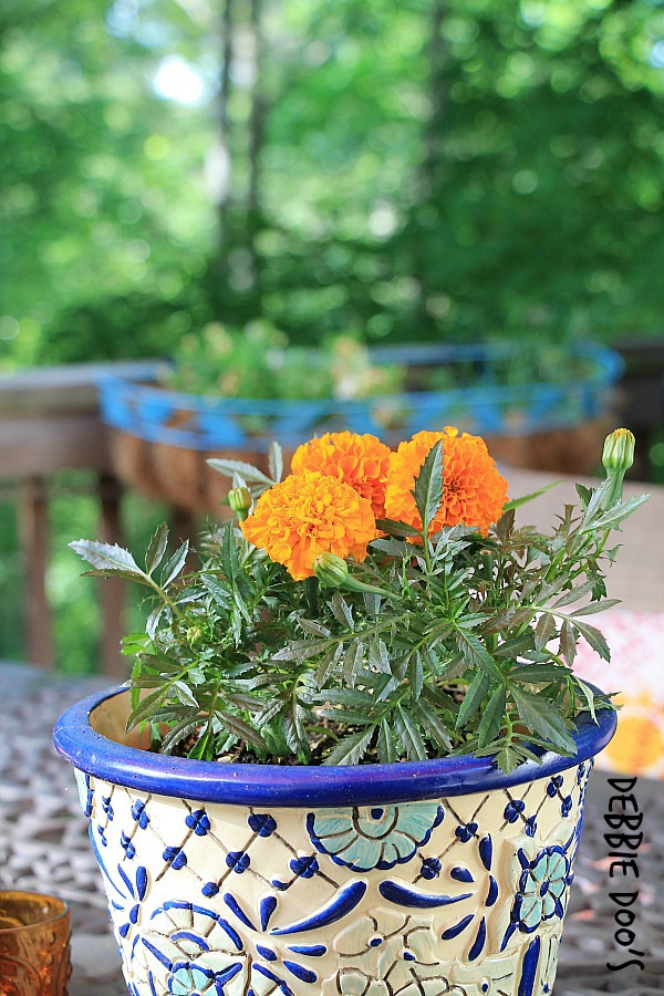 Very pretty, Debbie! I love how the color of the marigolds picks up the same color in the pillows. They do look like a fun pattern for your deck, too. I am patiently waiting for my plants to fill in a bit as well.