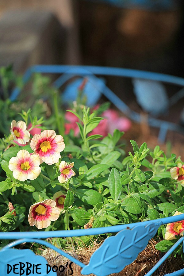 I was busy yesterday planting our garden baskets, and some pots. Β Thought I would share Β a glimpse.
