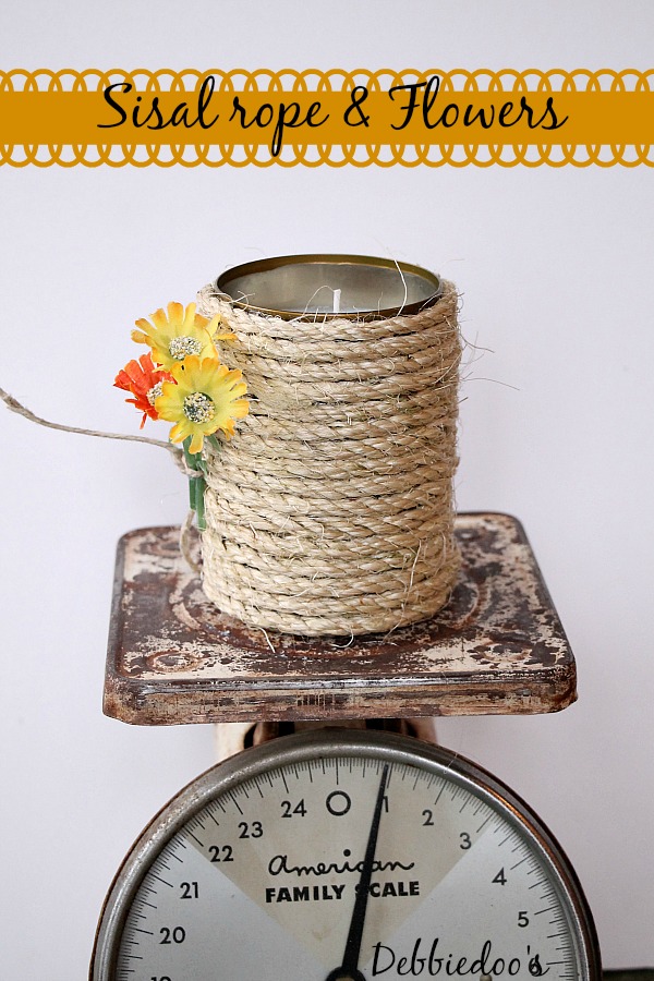 sisal rope and flower can soy candle
