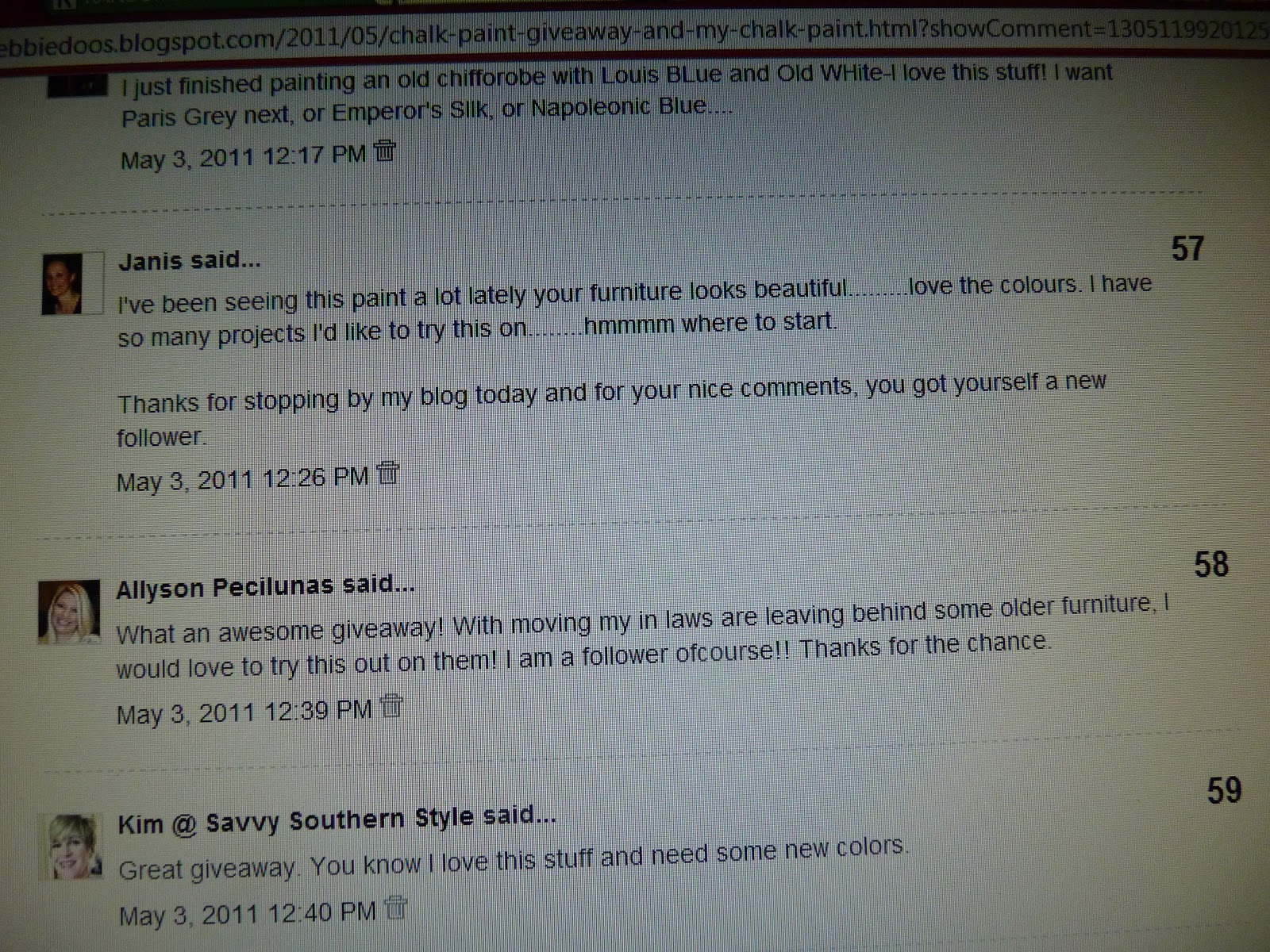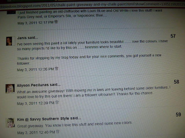I promised to announce the chalk paint winner and I did generate the winner through random.org.