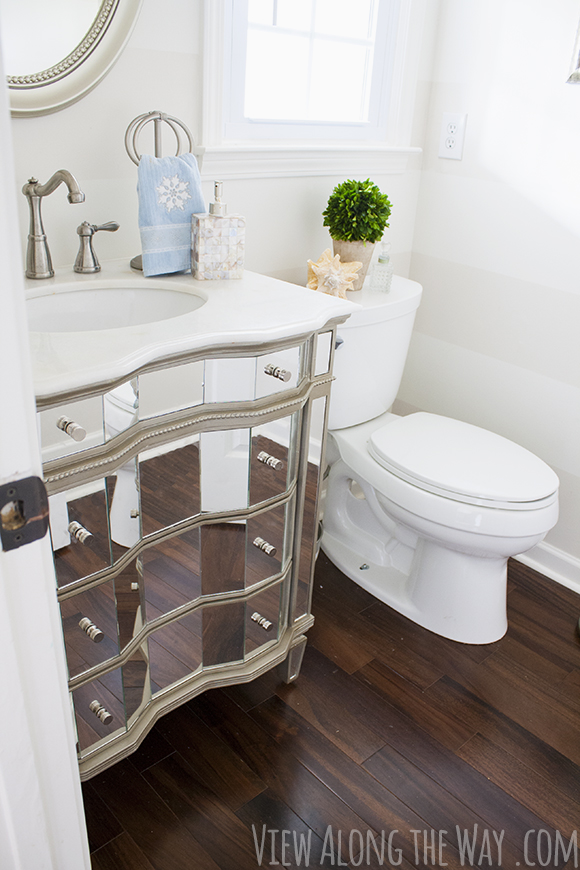 WOW!! What a beautiful transition. I love that Mirrored Vanity in the bathroom and the staircase before and after is amazing!!! Thank you so much for sharing this with us.