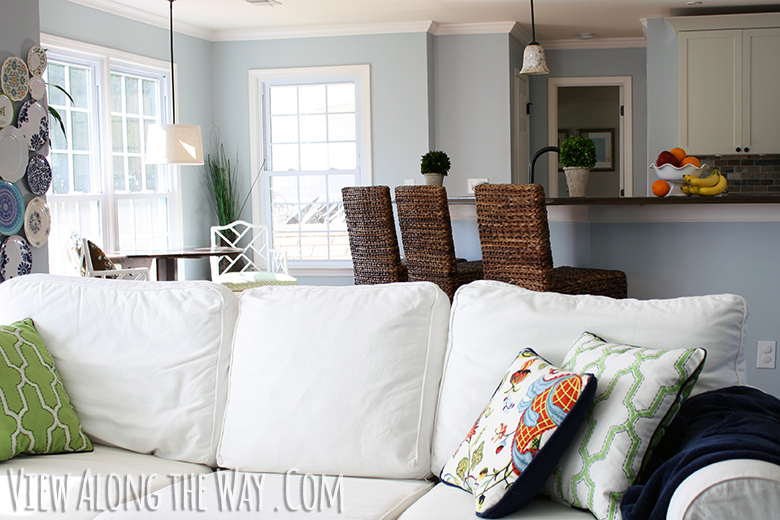 - Living room, kitchen, breakfast nook: Benjamin Moore Brittany Blue