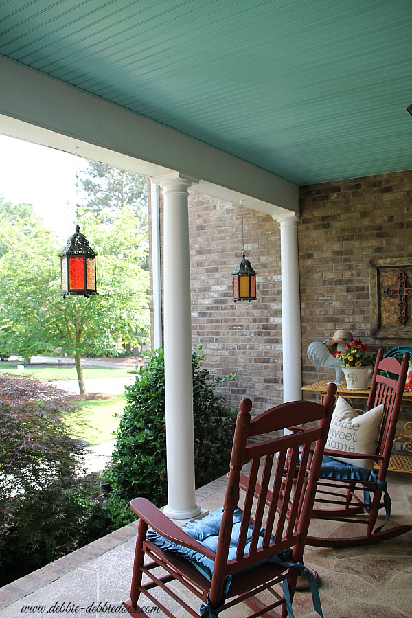 Debbie … I knew you were planning to paint the porch ceiling blue and wondered if you changed your mind. Thanks for sharing. Looks really nice. Our ceiling is not very pretty, but don’t know if I could go that dark, but maybe just a hint of blue. Something to think about.