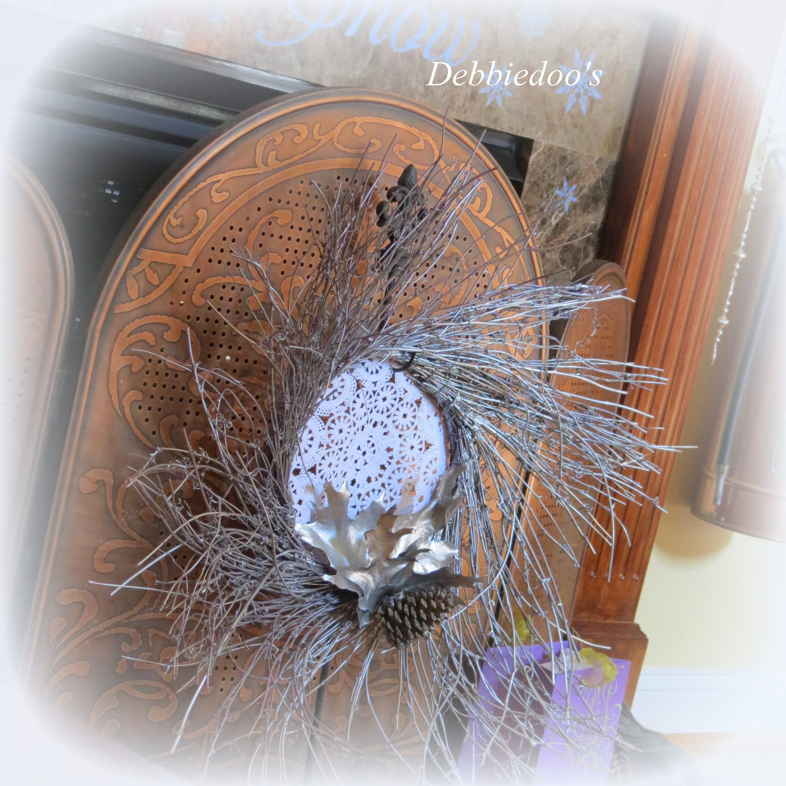 Debbie that really turned out pretty! Love the metallic color and the leaves add just the right texture along with the pinecone! I need to get a wreath of ‘many colors’!!