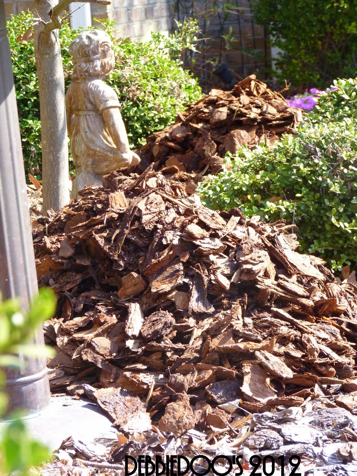 Today we bought 15 bags of Pine nuggets for our front beds. The rest of the area I do pine needles. I like the texture combination. How about you?What do you use?