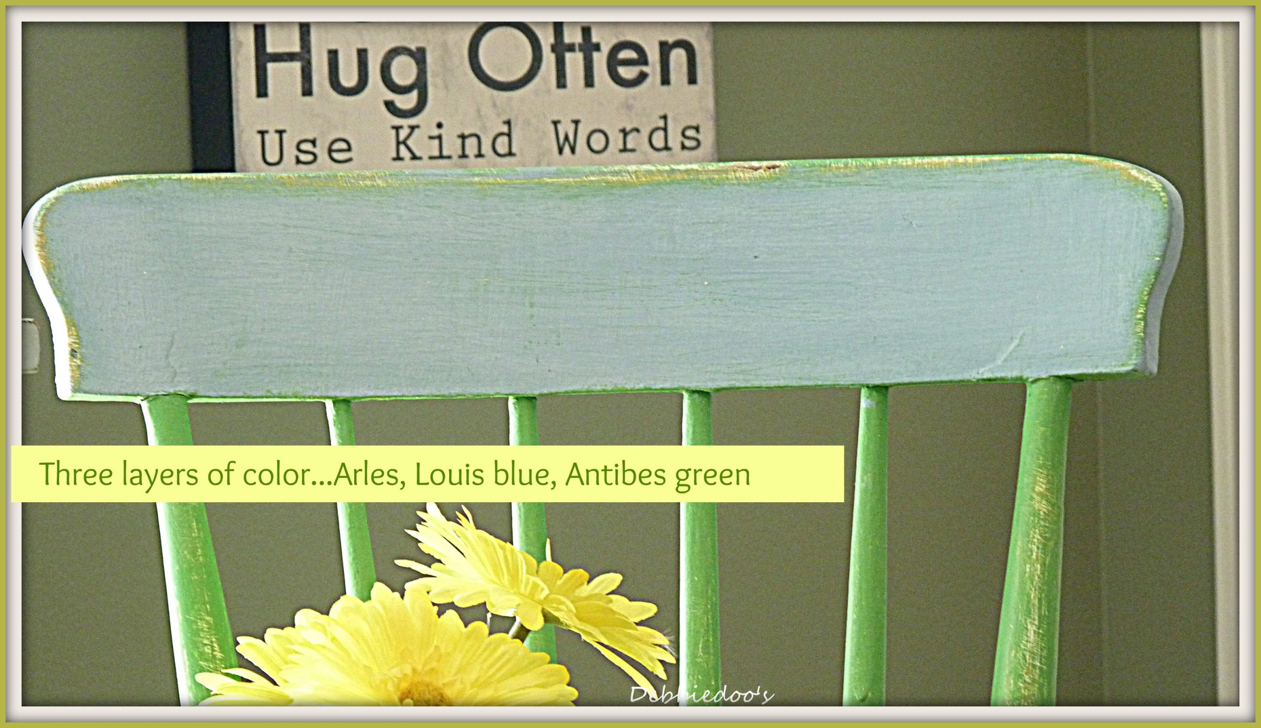Debbie, I love those colors, the chair looks a 100 years old! Duh, I never thought that of course chalk paint could work as chalk paint, like on a chalk board!! You are soooo smart!