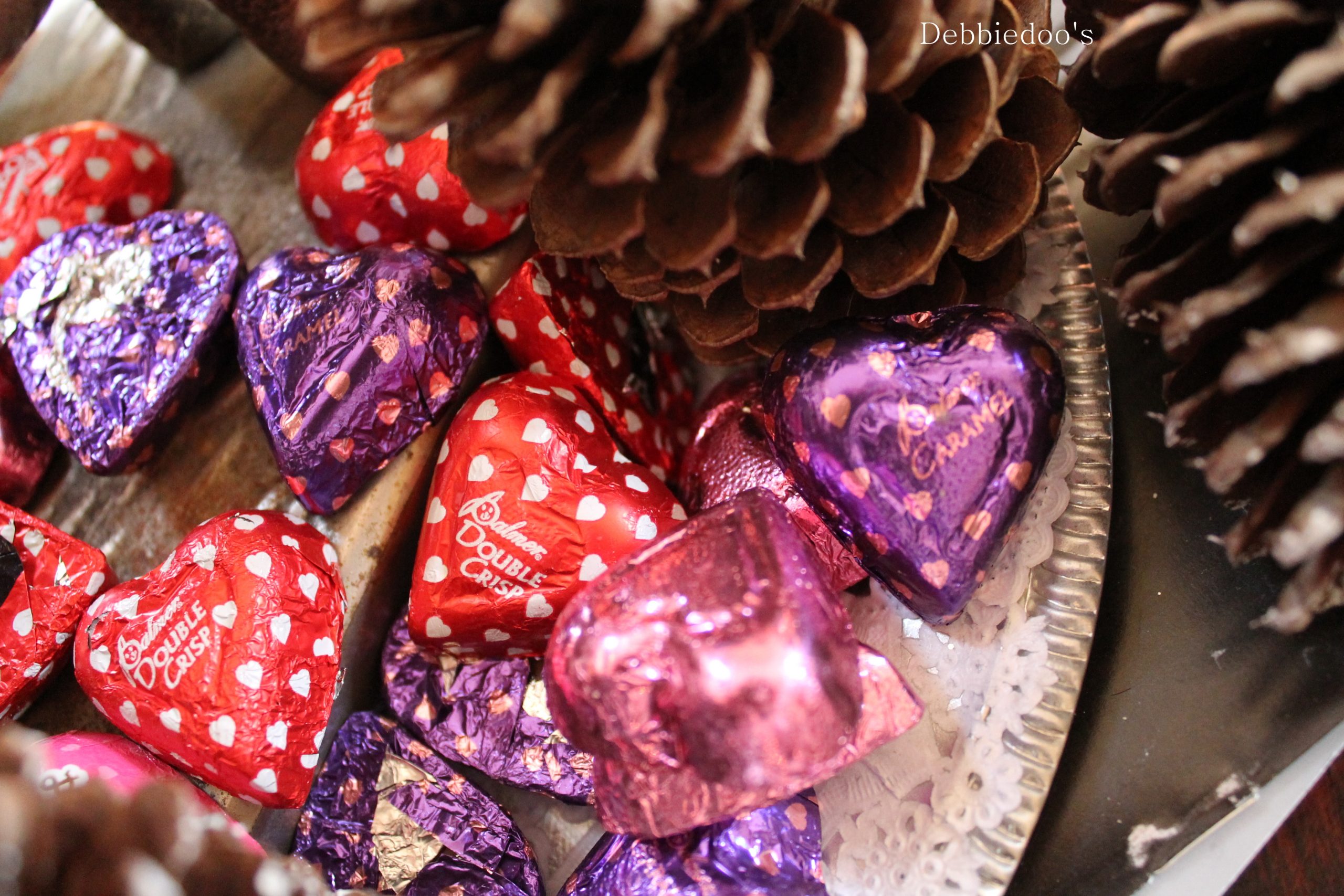 Oh Debbie, I’d be eating all that chocolate if I had it close by! So proud of your “will power” on your diet…you can do it! Love your mantle, so “sweet” with all those “hearts”!