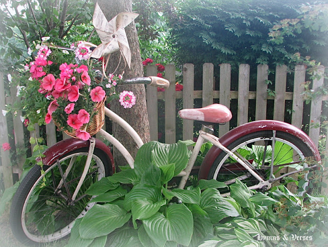 I just love seeing vintage bikes in landscapes….so whimsical and adds such grace to the garden!