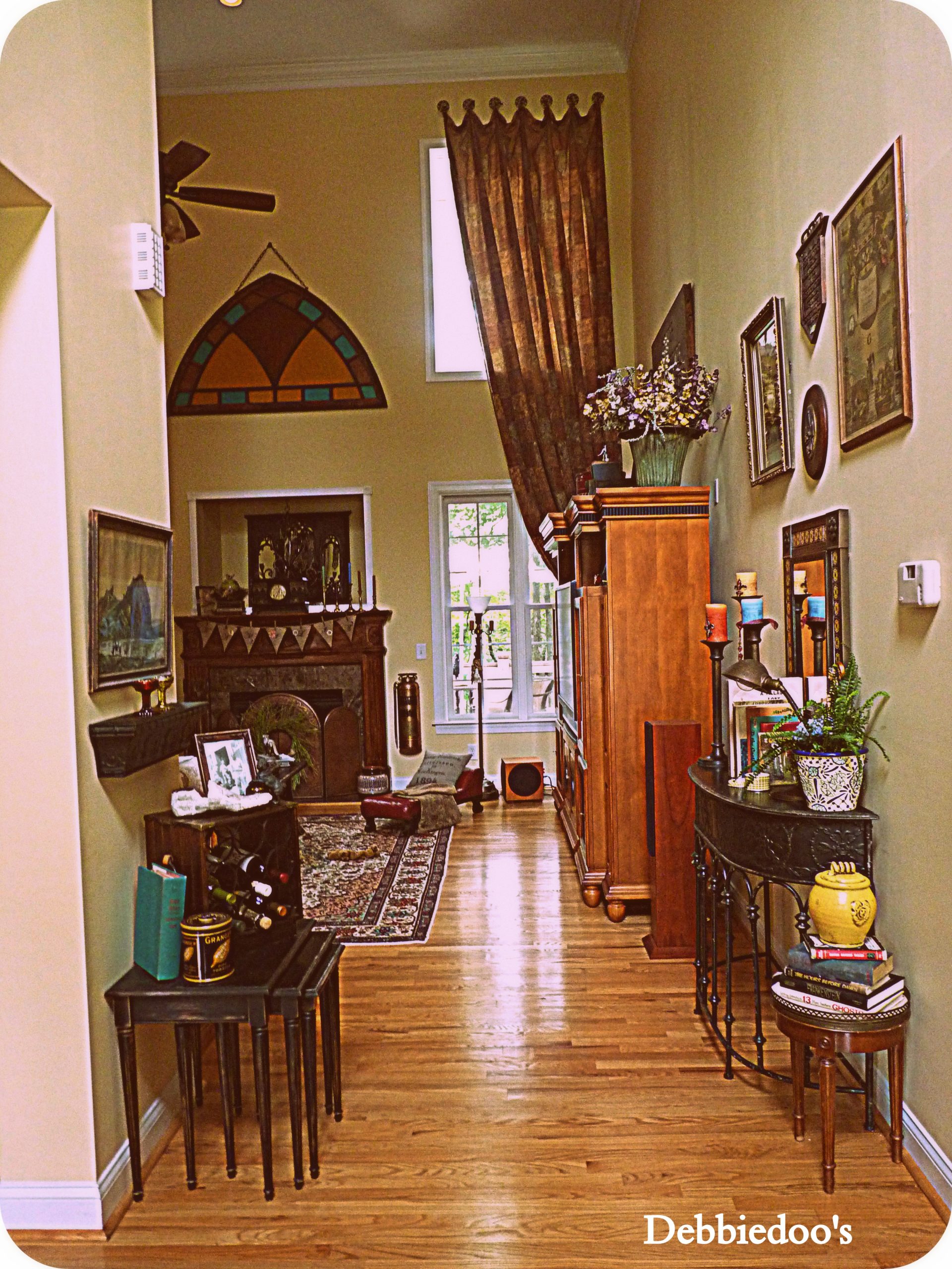 Debbie…I see these in vintage stores and think they are so cute. I need to purchase one. I love how you covered yous in paper. I always am impressed with your tall ceilings in your home…love them.