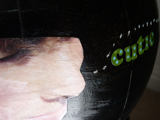 What I did after I sprayed the chalkboard spray. Let it dry, then I added some scrap book stickers, cut out some pictures of my boys that I printed out, and mod podged the entire globe.